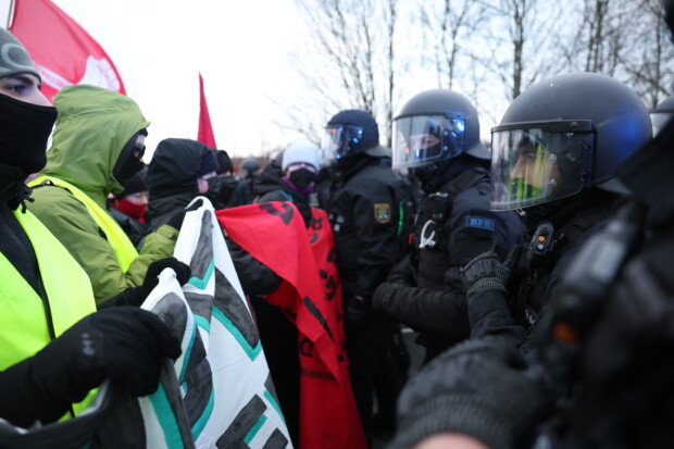 Angeblich waren auch Wasserwerfer gegen die linksfaschistische Bande in Stellung gebracht aber aus unerfindlichen Gründen wurden die Wasserwerfer nicht eingesetzt. Ebenso wurden keine Gummiknüppelgegen den Pöbel eingesetzt, auch kein Pfefferspray. Statt dessen haben die staatlichen Ordnungshüter den blockierenden schreienden linken Pöbel fast zärtlich entfernt. Ich vermute auf -Anweisung- gewisser Vorgesetzter. Wer bildet dort die Regierung ? Das alles hätte diesen primitiven Pöbel umgehend von den Straßen vertrieben – bei den damaligen Demos der Querdenker haben die staatlichen Aufpasser doch auch voll drauf gehalten. War jetzt anscheinend von gewissen Parteien nicht gewünscht. Leider wurden nur Samthandschuhe gegen den schreienden linksfaschistischen Pöbel… Mehr