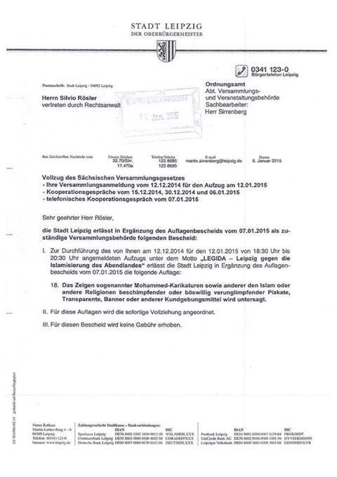 Leipzig ist eine besonders mutige Stadt. Ihr Ordnungsamt hat am 6.1. 2015 folgenden Bescheid erlassen: