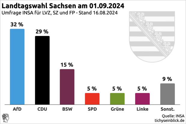 Der Landtag Sachsen ist nicht der Bundestag, aber den Trend zeigt Sachsen an. Vom neuesten Bundesdemoskometer (Stand 17. August) mit 16 Prozent SPD, 11 Prozent Grüne und 5 Prozent FDP bis zum sächsischen Bild ist es weniger weit, als die üblichen Beobachter meinen.