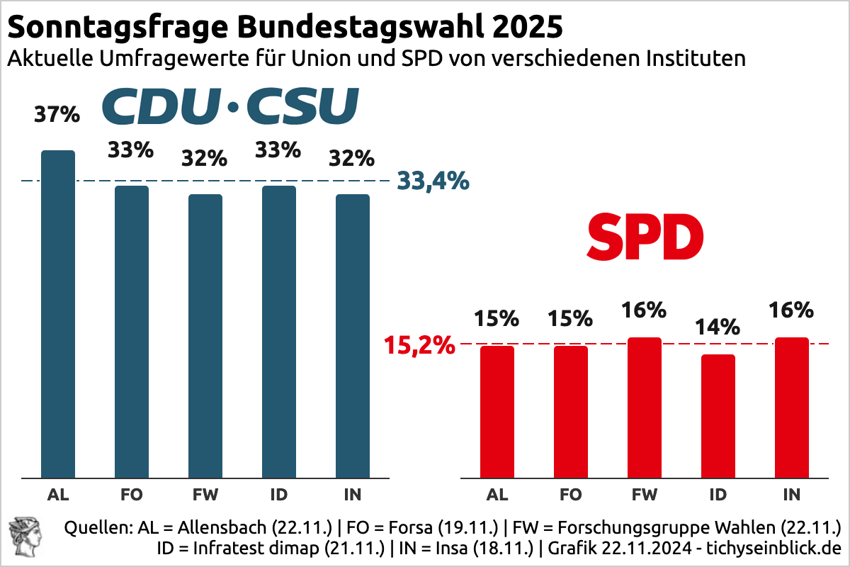 2024-11-22_SonntagsfrageBTW25_Union-SPD Published on 24. November 2024 in Steiermark: FPÖ-Kantersieg – Medien für Habeck, niemand für Scholz und Merz kümmert keinenFull resolution (1200 × 800) ← Previous