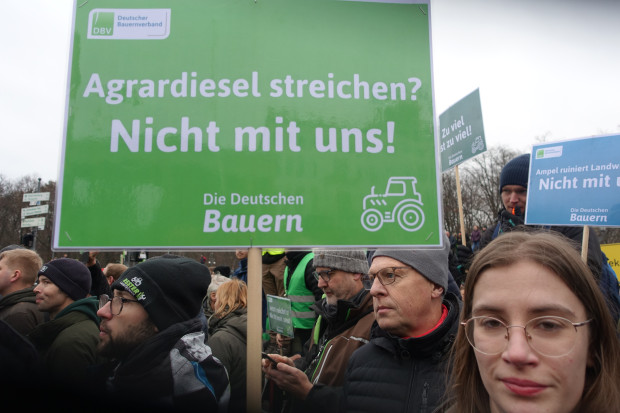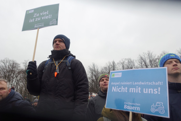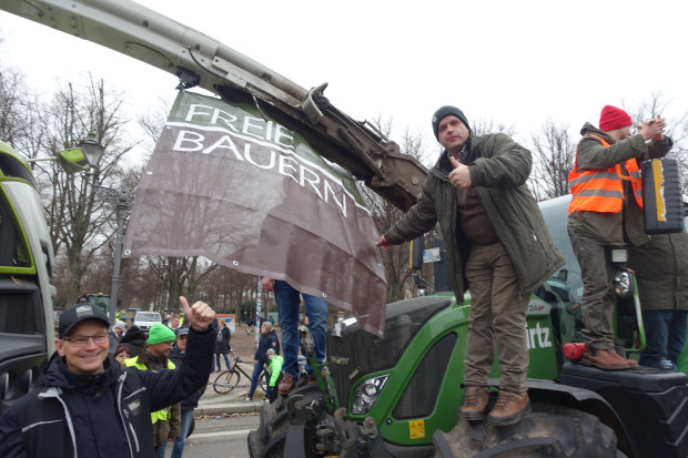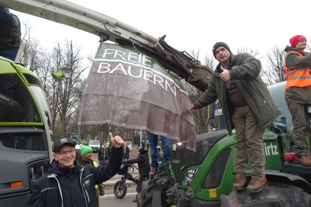 Anscheinend haben die Landwirte einen Nerv getroffen. Auf der Bühne sprechen ihnen Vertreter anderer Berufsstände die Solidarität aus und kritisieren die Finanzpolitik der Ampel, die trotz Rekordeinnahmen an Steuern planlos agiere und mit dem Haushalt überfordert sei. Ein Berliner Bürger sagt, er demonstriere mit, weil die neuen Steuern für Landwirte, die Erhöhung der CO2-Steuer um 33 Prozent und die Erhöhung der LKW-Maut dazu beitrügen, dass die Preise für Lebensmittel noch rasanter steigen würden als ohnehin schon.