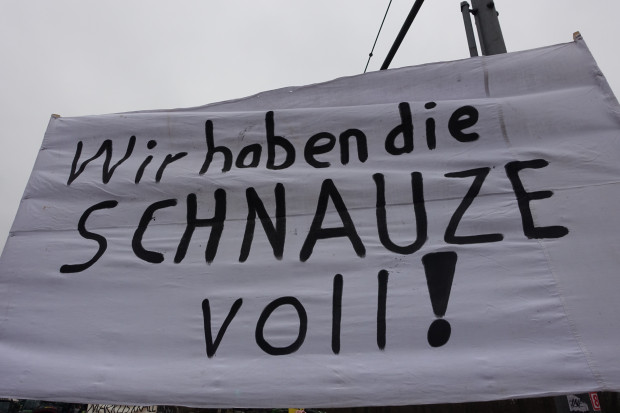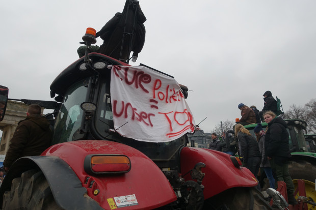 Die Banner, die an den Traktoren angebracht sind oder die Teilnehmer in die Höhe halten, sprechen für sich: „Agrardiesel streichen? Nicht mit uns!“, „Politik mit Weitblick? Fehlanzeige“, „Ampelbescherung? Zwei stinkende Eier!“, „Wir haben die Schnauze voll“, oder schließlich „Zu viel ist zu viel!“ – das Motto der Demonstration in Berlin.