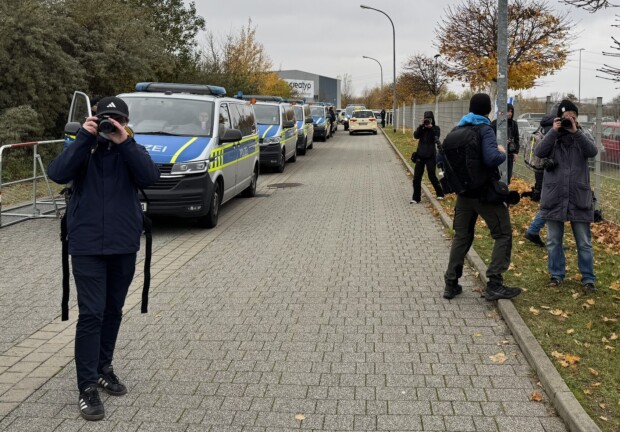 Die Antifa draußen? Leiser geworden. Ihre Parolen verhallen irgendwo zwischen Polizeiabsperrungen und Medienrummel. Youtuber wie „Weichreite“ oder „Schmidtkes Welt“ streamen die Protestchen draußen auf der Straße und vor der Halle. Sitzproteste einiger weniger, die nach dem Aus der Klimakleber ein neues Betätigungsfeld gefunden zu haben scheinen. Zwei spielen Karten. Ein vorbeilaufendes Messebesucherpaar ruft den vermummten, Multifunktionskleidung tragenden Aktivisten „Geht mal arbeiten!“ zu. Es rieche nach Cannabis, das morgens um 11 Uhr.