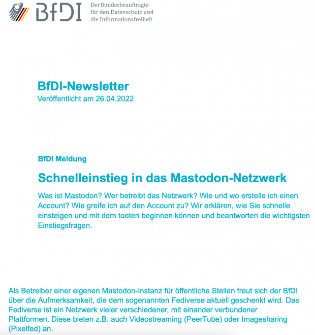 Bildschirmfoto 2022-04-27 um 17.24.53 Published on 27. April 2022 in Bundesbeauftragter für Datenschutz bewirbt Twitter-Konkurrenten MastodonFull resolution (620 × 660) ← Previous Next →