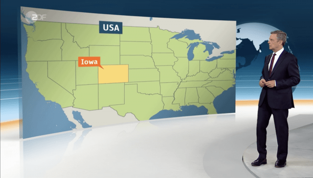In Iowa beginnen die Vorwahlen der Democrats, aber wo die Redaktion Kleber Iowa zeigen ließ, handelt es sich um den Bundesstaat Colorado. Dass Kleber da nach einem Mauseloch sucht, ist nur zu verständlich. Mit seiner Vermutung, das würde mal sein Grabstein, liegt er allerdings falsch. Sein polit-medialer Nachlass wird nicht so lustig ausfallen.