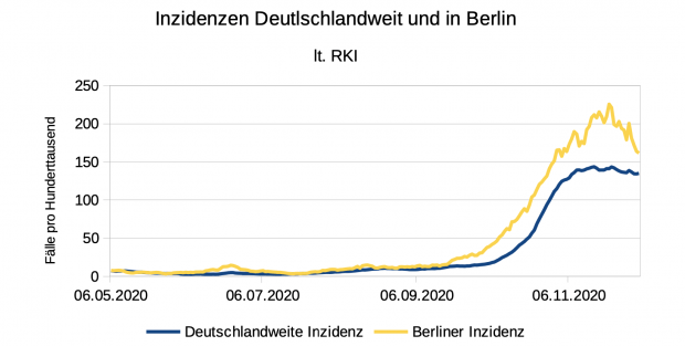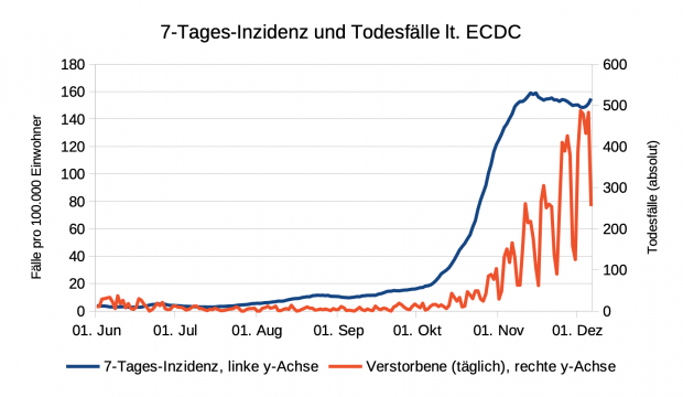 Das Gesundheitssystem ist von einer Überlastung noch fern, es werden 4.613 freie Erwachsenen-Intensivbetten gemeldet. Auch Berlin, aufgeregten Medienschaffenden immer eine Horror-Meldung wert, verfügt noch über 178 freie Betten. Nur rund 1/4 der Patienten auf den Intensivstationen sind dort wegen Corona. Das umliegende Brandenburg verfügt noch über 20 Prozent freie Betten auf seinen Intensiv-Stationen, dort sind nur 13 Prozent der Patienten Corona-belastet. Sollte also Berlin wieder von Lastenfahrrädern auf Autos umstellen wollen, so könnten Engpässe mit Hilfe des Umlands versorgt werden.