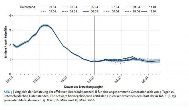 Am 4. Mai meldete das RKI in seinem täglichen Lagebericht, dass die Reproduktionszahl mit Datenstand 4. Mai 0:00 Uhr, 0,76 betragen würde.