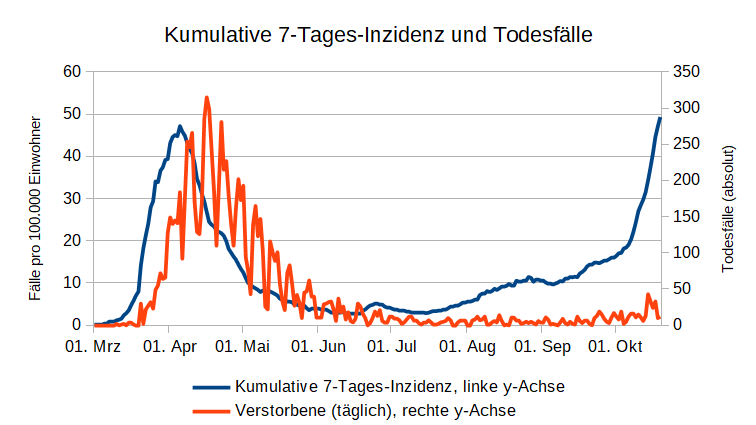 7tages Inzidenz und Todesfälle 1910 Published on 19. Oktober 2020 in Corona-Update zum 19. Oktober: Fallzahlen steigen, aber keine Überlastung in SichtFull resolution (756 × 425) Next → Quelle: Europäisches Zentrum für die Prävention und die Kontrolle von Krankheiten, eigene Berechnungen