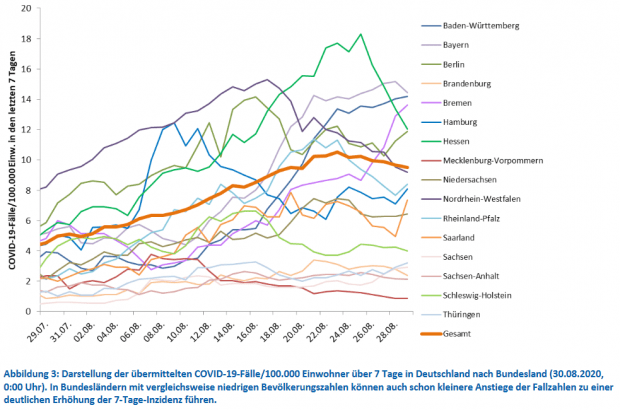 bundesländer 3008 Published on 31. August 2020 in Corona-Update zum 31. August: Die Fallzahlen sinkenFull resolution (620 × 410) ← Previous Next → Quelle: Täglicher Sitautionsbericht des RKI zum 30. August