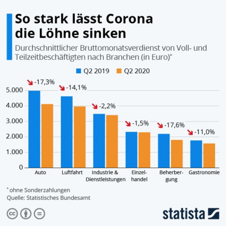 Anders als im staatlich abgesicherten öffentlichen Dienst sinken die Löhne jedoch durch die Corona-Krise bei den Arbeitnehmern in weiten Teilen der deutschen Kernindustrie.