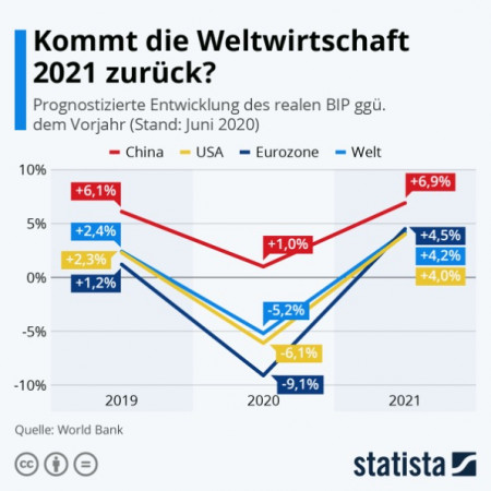 Dabei hatten Merkels Arbeits- und Wirtschaftsminister in letzter Zeit immer wieder von einer raschen und fortschreitenden wirtschaftlichen Erholung fabuliert. Dafür hielten sie – wie unten – schon optimistische Grafiken parat. Doch die werden jetzt von Merkels Paniksturm verweht. Der angeblich kurze Wirtschaftsknick wird sich jetzt in Deutschland und Europa zu einer längeren Talfahrt – also einem grafischen L – mit Pleitewellen und Millionen zusätzlichen Arbeitslosen verwandeln.