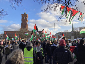 Es ist also wieder „Palästina“-Demotag an diesem 27. Januar in Berlin. Moment: 27. Januar? Da war doch was! Richtig: Es ist der internationale Holocaust-Gedenktag, den sich die Veranstalter für ihren pro-palästinensischen beziehungsweise anti-israelischen Aufzug ausgesucht haben. Eine Provokation? Hier vor dem Roten Rathaus in Ostberlin, wo die Demo beginnt, sehen sie das natürlich ganz anders.