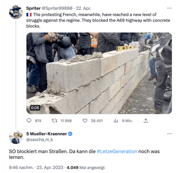 Bildschirmfoto 2023-04-25 um 13.24.55 Published on 25. April 2023 in DUH-Geschäftsführer empfiehlt strafbare Straßenblockaden mit BetonFull resolution (620 × 588) Next →