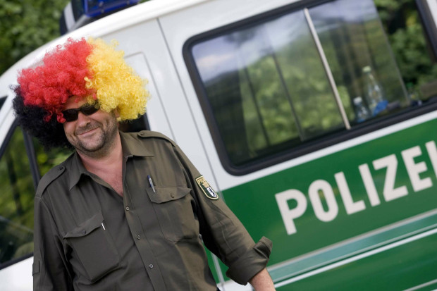 imago0002127815h Published on 10. März 2024 in Polizeipräsidentin Berlin verbietet Deutschlandfähnchen für Beamte bei der EMFull resolution (620 × 413) Next → Damals noch möglich: Ein gut gelaunter Berliner Polizist mit Afro Perücke in den deutschen Nationalfarben Fußball WM Herren WM 2006.