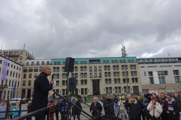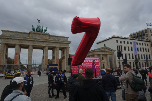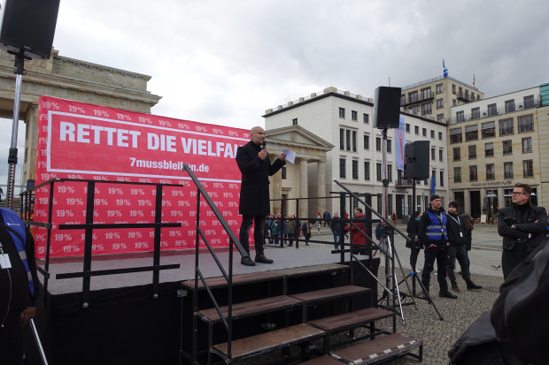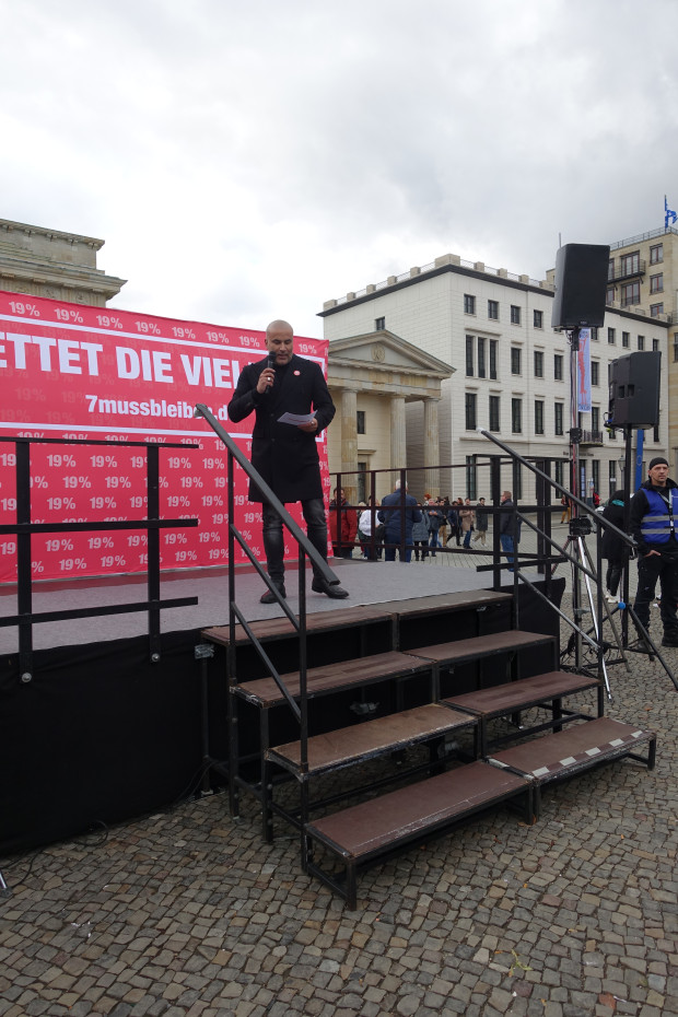 Die Hauptgeschäftsführerin der Dehoga, Ingrid Hartges, spricht auf der Kundgebung des Bündnisses „Rettet die Vielfalt!“ vor dem Brandenburger Tor. Sie erklärt, dass die niedrigere Mehrwertsteuer von sieben Prozent geholfen habe, die Preissteigerungen bei Personal, Energie und Lebensmitteln nicht voll an die Kunden weitergeben zu müssen. Üres sagt, viele Wirte würden schon jetzt privates Geld einbringen, um die Preise vergleichsweise niedrig zu halten. Erhöhe die Ampel die Mehrwertsteuer von 7 auf 19 Prozent, dann funktioniere das alles nicht mehr. Dann komme es zu deutlich höheren Preisen in den Gaststätten – oder gleich zu massenweisen Schließungen von Kneipen und Restaurants.