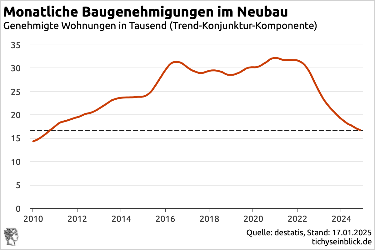 Den laufenden industriellen Niedergang illustriert die Lage beim Wohnungsbau. Baugenehmigungen von Januar bis November 2024 im Vergleich zum Vorjahreszeitraum: