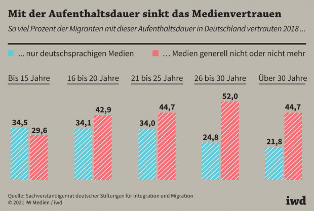 iwd-2021-04-Medienvertrauen_nach_Aufenthaltsdauer Published on 27. Februar 2021 in Je länger in Deutschland, desto skeptischer gegen die MedienFull resolution (620 × 418) ← Previous Next →