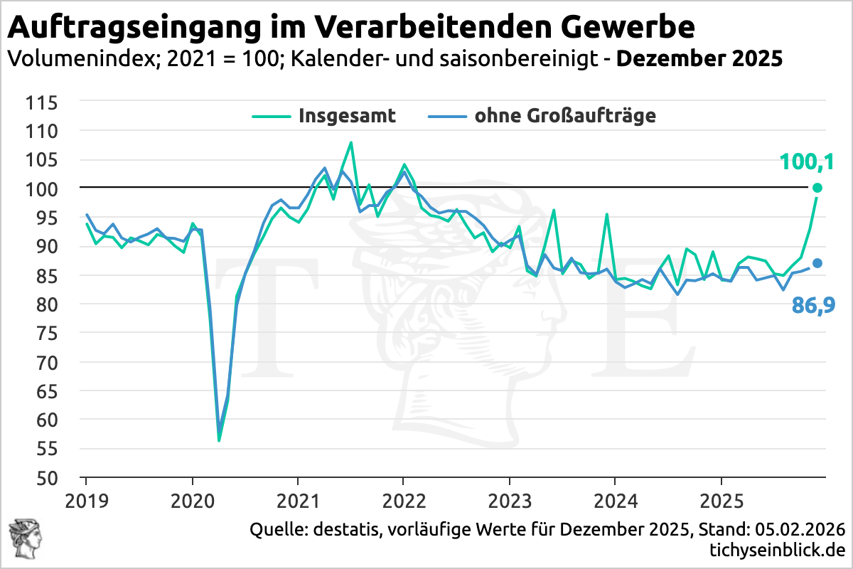 Energiemangelwirtschaft. Die reale (preisbereinigte) Produktion im Produzierenden Gewerbe ist nach vorläufigen Angaben des Statistischen Bundesamtes im Dezember 2025 weiter gesunken.