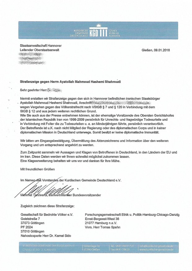 Strafanzeige gegen Ayatollah Published on 9. Januar 2018 in Kurdische Gemeinde in Deutschland erstattet Anzeige gegen Mahmoud ShahroudiFull resolution (620 × 876) ← Previous