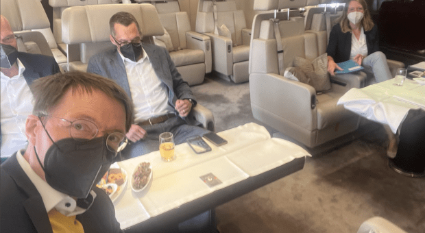 Netz verspottet Karl Lauterbach für Maskenfoto im Flugzeug