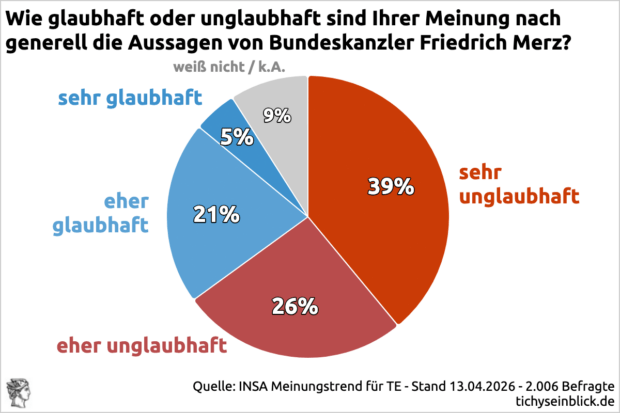 Die Unzufriedenheit mit Kanzler Merz mit dem neuen Tiefpunkt von 18 Prozent mit ihm Zufriedenen spiegelt den Parteienstaat als Steuereintreiber und Steuernerhöher zur Finanzierung der Selbsbedienung und der seiner Klientel.