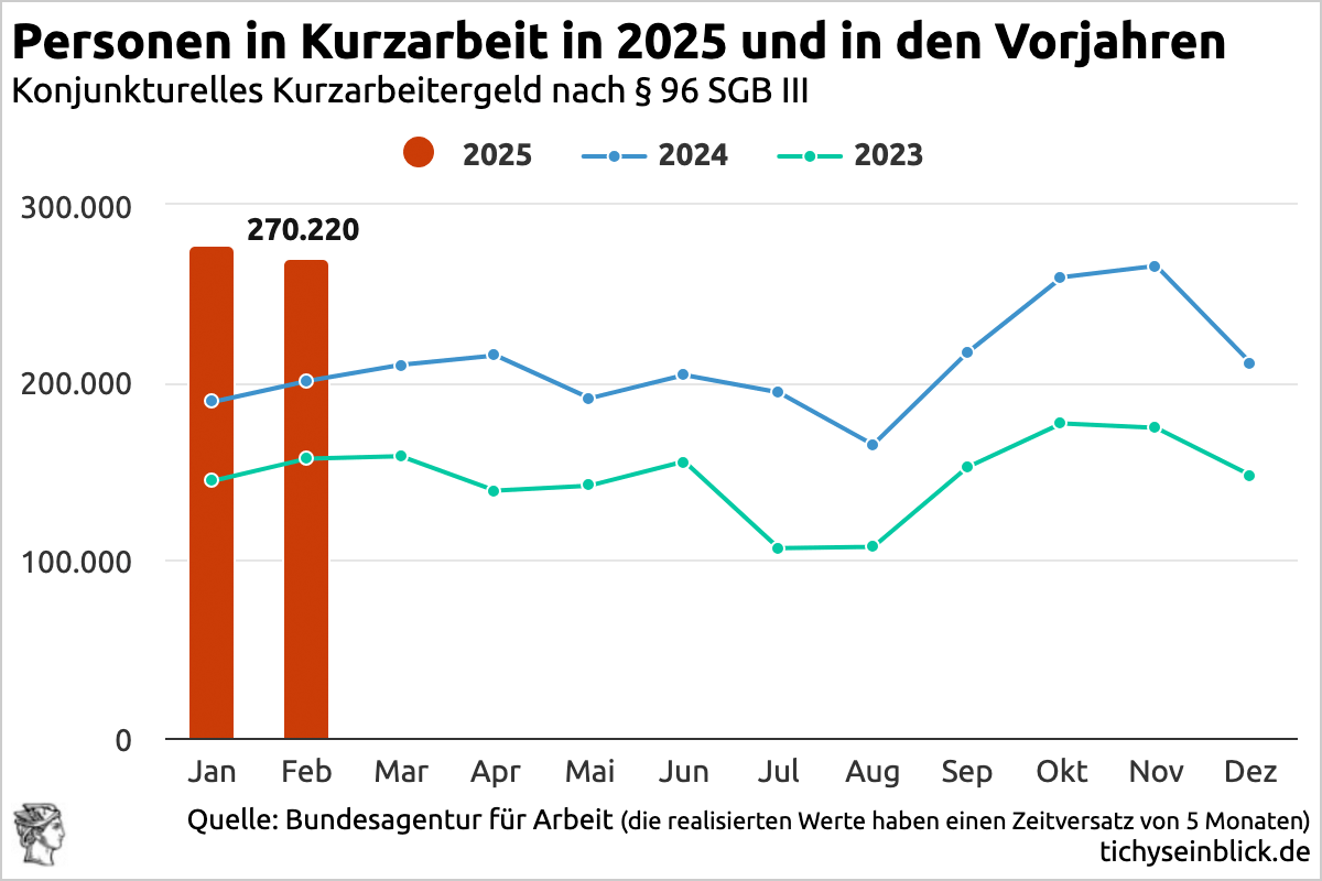 Die Arbeitslosenquote steigt durch 155.000 Arbeitslose mehr auf 6,3 Prozent, vor allem durch Industrie-Abbau. Im Gastgewerbe dürften 50.000 bis 80.000 Stellen durch Betriebsschließungen wegfallen. Jeder dritte Betrieb gerät in Verlustzone, besonders Kleinstunternehmen im ländlichen Raum. Damit verliert gerade dort die Lebensqualität weiter. 18,2 Prozent in Reisebranche rechnen mit 10.000 bis 20.000 weniger Jobs bei Umsatzstagnation. Die Zunahme der Beschäftigten in Kurzarbeit verschärft das Bild. Wohin man auch schaut, die Zeichen an der Wand sieht nur nicht, wer nicht will – wie die Herrschaftskaste und die von ihr mit Steuergeldern auch in Krisenzeiten mit satten Einkommenszuwächsen und fürstlichen Pensionen versorgten direkten und indirekten Staats- und NGO-Bediensteten. Aber CDU-Merz und SPD-Klingbeil reden die Lage schön mit immer neuen Ankündigungen, die sich schnell als Luftnummern herausstellen.