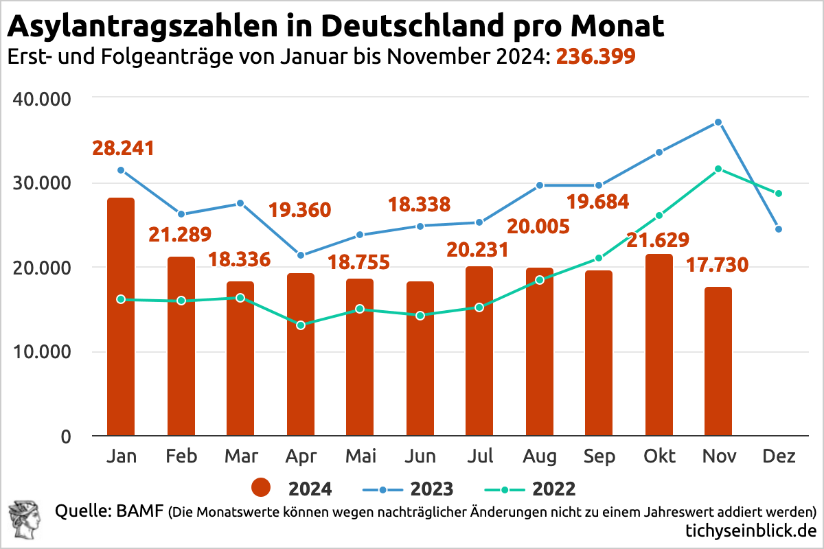Im laufenden Bundestagswahlkampf wird die von Merz‘ politischer Stiefmutter Merkel begonnene grenzenlose Asyleinwanderungspolitik nicht nur, aber auch wegen Syrien eine große Rolle spielen. Dazu die aktuell offiziellen Zahlen – mit aller Skepsis der Vollständigkeit und Erhebungsqualität gegenüber.
