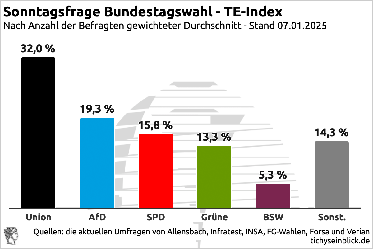2025-01-07_SonntagsfrageBund_TE-Index Published on 8. Januar 2025 in Facebook und Instagram folgen X – Trump gibt den Takt vor – EU schläftFull resolution (1200 × 800) Next →