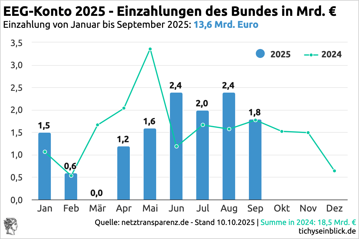 Die EEG-Zuzahlung des Staates werden vermutlich etwa dieselbe Größenordnung wie 2024 haben. Anders verteilt, aber vermutlich genauso hoch.