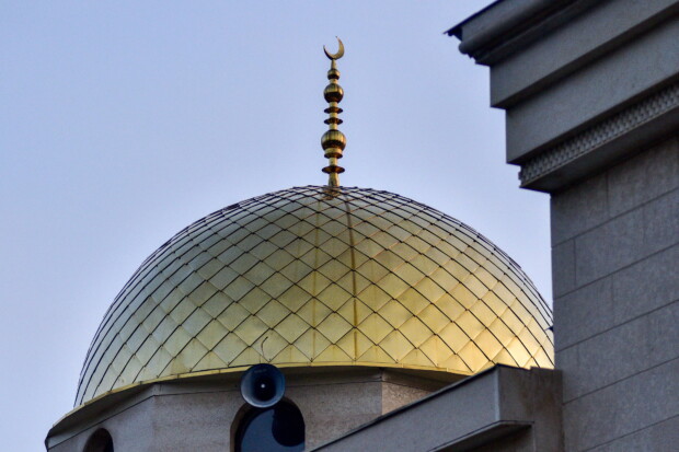 KYRGYZSTAN, BISHKEK – MARCH 30, 2025: A crescent crowns the spire of a dome of the Mosque of Abu Bakr where believers pray to mark Eid al-Fitr Festival of Breaking the Fast, a Muslim holiday celebrating the end of the holy fasting month of Ramadan. Vladislav Nogai/TASS PUBLICATIONxINxGERxAUTxONLY 79464537