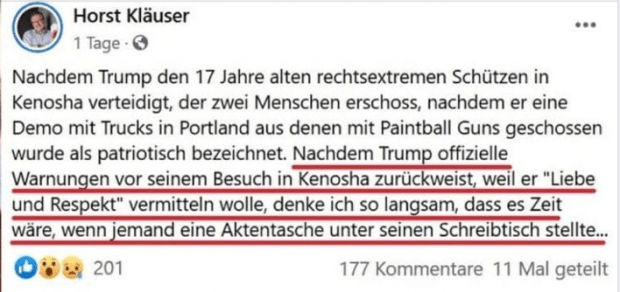 Bildschirmfoto 2020-09-03 um 09.13.03 Published on 3. September 2020 in Pensionierter WDR-Journalist phantasiert über ein Attentat auf US-Präsident TrumpFull resolution (620 × 292) Next →