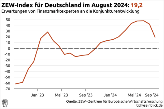 Die deutsche Wirtschaft stecke mit einem Bein in der Rezession, schreibt das Manager-Magazin, jetzt sähen auch Börsianer mit großer Sorge in die Zukunft. Der ZEW-Index fällt viel stärker als erwartet. Die Erwartungen für die deutsche Konjunktur sind im August so stark eingebrochen wie seit zwei Jahren nicht mehr.