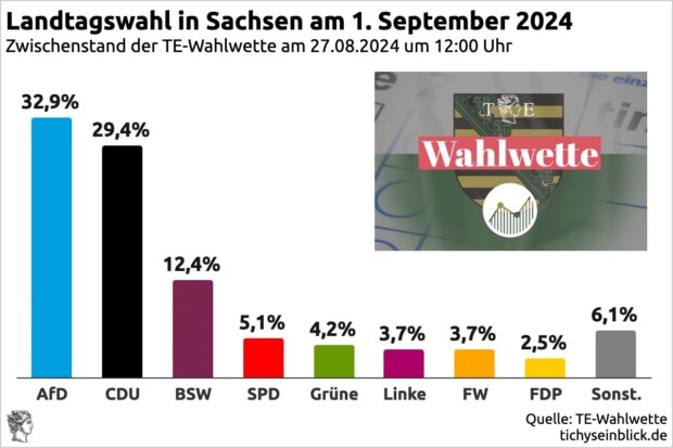 2024-08-27_1200_LTW-Sachsen-TE Published on 30. August 2024 in Bei TE-Wahlwette: SPD gefährlich nahe an entscheidender HürdeFull resolution (620 × 413) ← Previous Next →