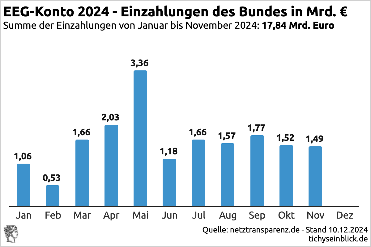 2024-12-10_EEG-Konto_Einzahlungen-Bund Published on 12. Dezember 2024 in Schlafwandler Scholz, Tagträumer Habeck, Lindners Bremserhäuschen abgekoppeltFull resolution (1200 × 800) Next →