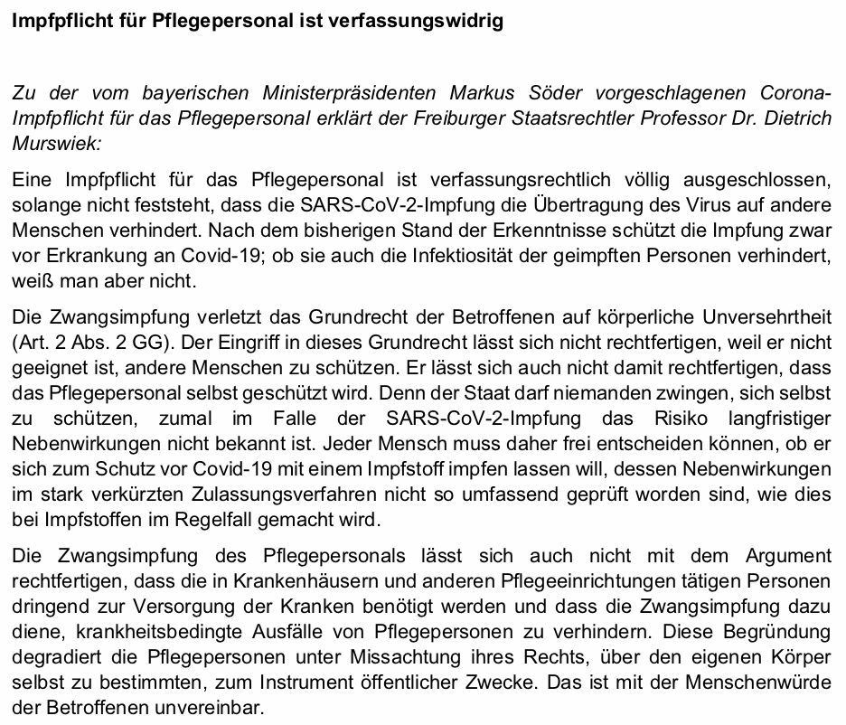 Bildschirmfoto 2021-01-13 um 13.16.49 Published on 13. Januar 2021 in Söders Impfpflicht für Pflegepersonal hält Staatsrechtler Murswiek für verfassungswidrigFull resolution (936 × 802) Next →