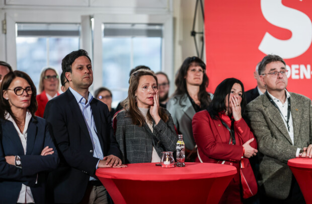 Das Foto von der SPD-Wahlparty am Sonntag in Stuttgart besitzt das Zeug, als Symbolbild für den Zustand der Partei in Archive und Geschichtsbücher einzugehen. Die Genossen starren mit versteinerten Gesichtern auf den Bildschirm, über den gerade die ersten Hochrechnungen laufen. Manche schlagen sich die Hand vor den Mund, als würde sich vor ihren Augen ein Unfall abspielen. Den gibt es tatsächlich, zwar ohne Blut, aber trotzdem grauenvoll: die Sozialdemokratie kollidiert mit dem Wählerwillen – und zerfällt in Einzelteile.