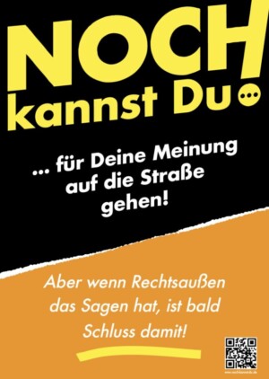 Was also kann man noch? „Für deine Meinung auf die Straße gehen“ zum Beispiel. Allerdings: „Aber wenn Rechtsaußen das Sagen hat, ist bald Schluss damit.“