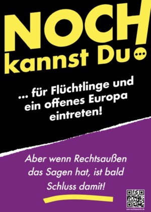 Was kann der Mensch noch, solange Rechtsaußen nicht erfolgreich nach der Macht greift? Beispielsweise „für Flüchtlinge und ein offenes Europa eintreten“.