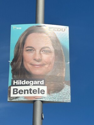 Am entspanntesten, minimalistischsten, unprätentiösesten wirkt allerdings das Poster einer CDU-Kandidatin, die sich auf das wirklich Essentielle beschränkt: Gesicht, Name, Parteikürzel, Platz für Notizen.