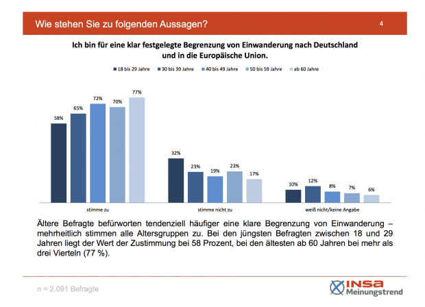 „INSA-Meinungstrend: 70 Prozent wollen klare Begrenzung der Zuwanderung.“
