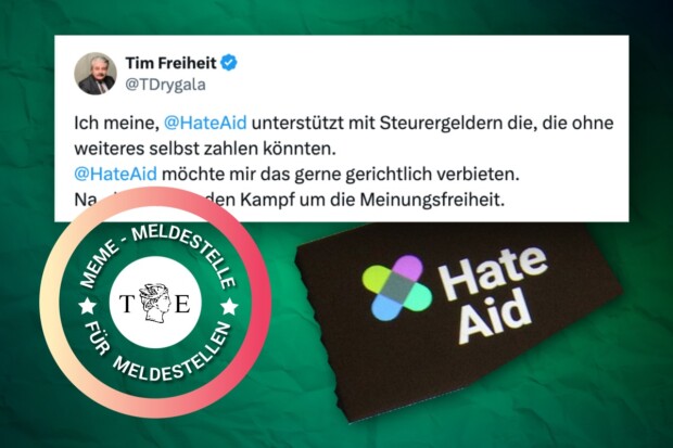 Sollte Drygala vor Gericht verlieren, kostet ihn das dann etwa 2.000 Euro, die an HateAid zu zahlen sind. Dazu kommen die eigenen Anwaltskosten. Einer zahlt aus der eigenen Tasche – der andere ist abgesichert durch Millionenförderung. Aber behaupten Sie bloß nicht, HateAid nutze dafür Steuergelder.