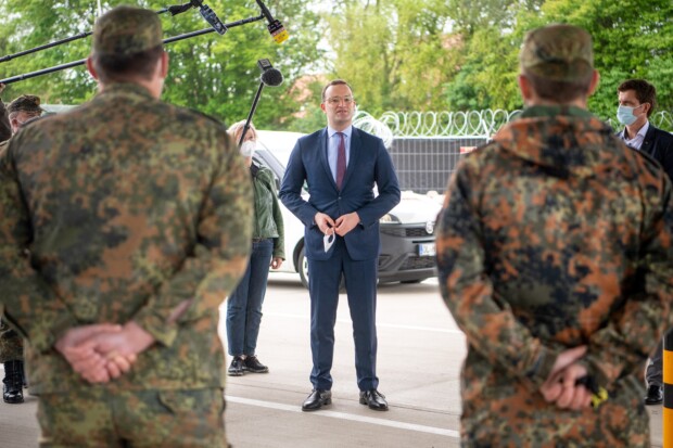 Allein die Vorstellung, der aufgeblasene Masken- und Corona-Test-„Experte“ Jens Spahn würde sich eines Tage so – wie auf dem Foto – vor mir so aufbauen, würde in mir jeden Gedanken töten, mich bei der Truppe freiwillig zu melden.