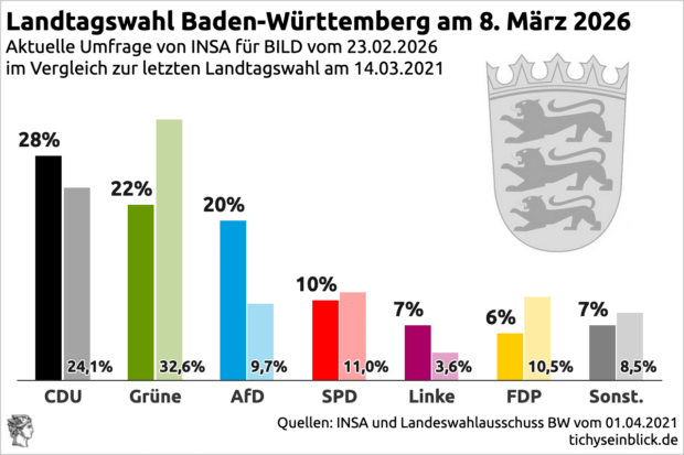 Die wichtigste Wahl ist die Wahl in BW. Die AfD wird die Grünen überholen. Die Grünen sollten durch die ÖDP ersetzt werden. Und die Linke durch DieBasis.