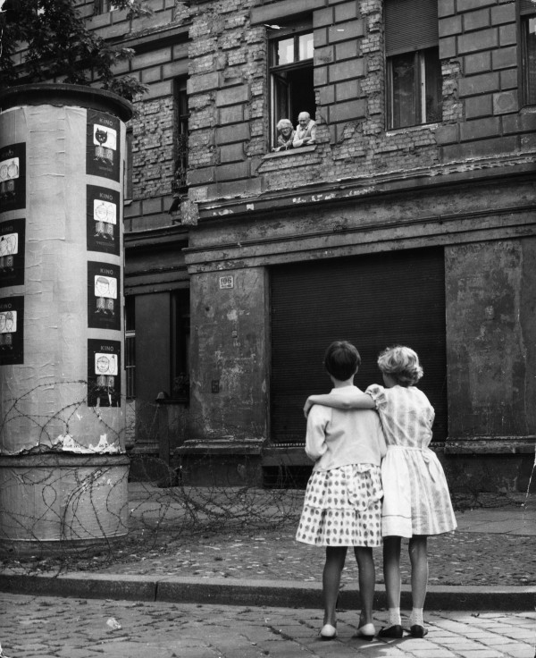 East And West 12. August 2017Full resolution (600 × 736) ← Previous Next → 14th August 1961: Two little girls in a West German street chat with their grandparents in the window of their home in the eastern zone, separated only by a barbed wire barricade. (Photo by Keystone/Getty Images)