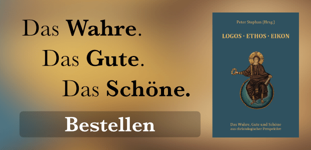 Peter Stephan (Hg.): Logos · Ethos · Eikon. Das Wahre, Gute und Schöne aus christologischer Perspektive. Dominus-Verlag, 384 Seiten, 53 Abbildungen in Farbe. Gebunden. Fadenheftung, Kaptalband, zwei Lesebändchen. 29,85 €.