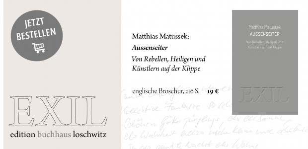 Matthias Matussek, Außenseiter. Von Rebellen, Heiligen und Künstlern auf der Klippe. Reihe EXIL in der Edition Buchhaus Loschwitz, 216 Seiten, 19,00 €