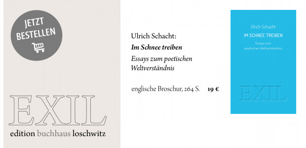 Ulrich Schacht, Im Schnee treiben. Essays zum poetischen Weltverständnis. Reihe EXIL in der Edition Buchhaus Loschwitz, 264 Seiten, 19,00 €