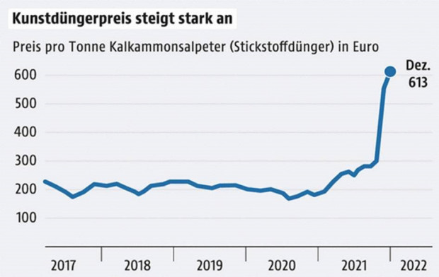 Aber das dicke Ende kommt noch. Denn nun steigen auch die Düngemittelpreise und mit ihnen die Nahrungsmittelpreise.