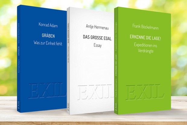 Mit der fünften EXIL-Staffel ist der Verlegerin Susanne Dagen erneut ein Triptychon gelungen, das die deutsche Gegenwart aus drei Blickwinkeln auf die Probe stellt. Antje Hermenau sieht ein „großes Egal“ heraufziehen und setzt konservative Gegenakzente. Konrad Adam findet alle Gräben offen. Frank Böckelmann liefert zeitlos gültige Analysen.