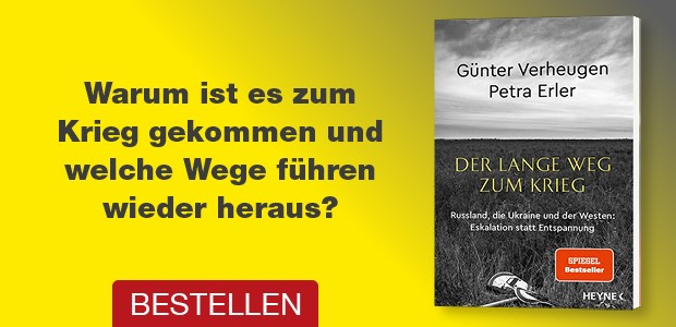Günter Verheugen/Petra Erler, Der lange Weg zum Krieg. Russland, die Ukraine und der Westen: Eskalation statt Entspannung. Heyne Verlag, Hardcover mit Schutzumschlag, 336 Seiten, 24,00 €.
